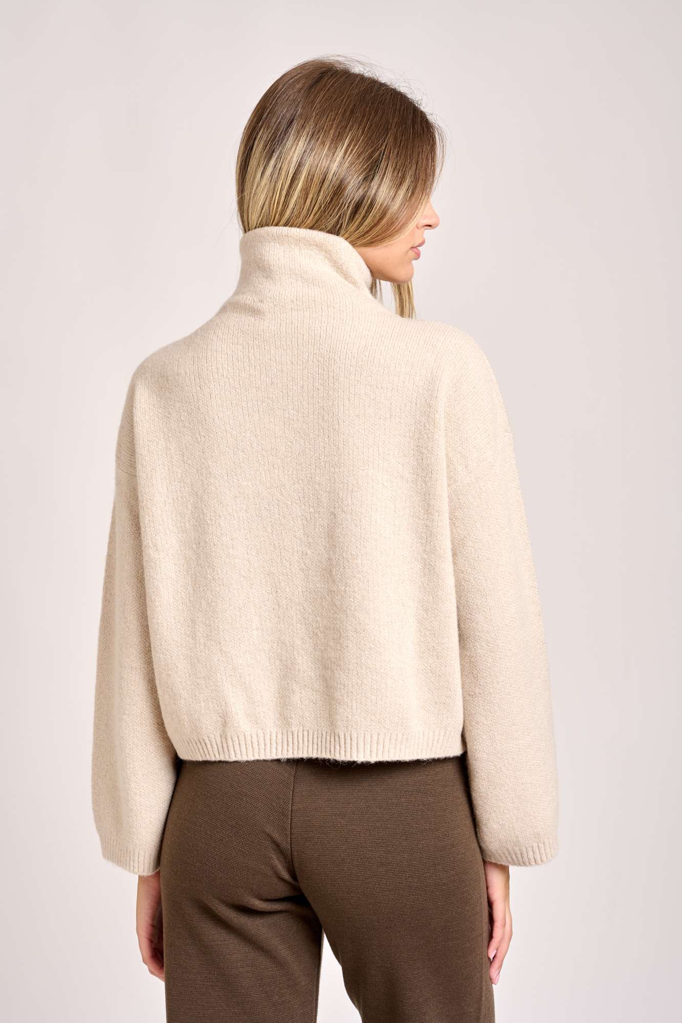Pullo- over colore stucco stile semplice e classico con manica lunga, presenta una lavorazione con trama ampia vestibilità collo alto.